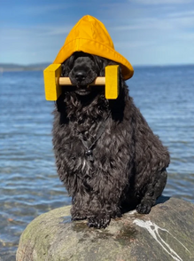 Bonnie er ei allsidig frøken som er med på det meste…hun bader og dykker like gjerne i basseng som i sjøen og elsker å være med på SUPbrettet om sommeren. Bonnie er en Portugisisk Vannhund og vi kaller ofte rasen for Portis. Dette er en meget gammel rase og de er avlet til å apportere og dykke i vann - de var fiskerens beste «redskap» ombord på fiskebåtene i Portugal på 1700 tallet. Vannarbeidet er derfor kjerneaktiviteten til rasen - en egenskap som er utviklet gjennom flere hundre år på Portugals kyst.
